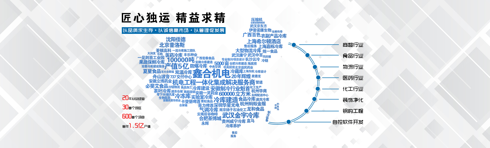 冷凍冷藏設(shè)備大型冷庫(kù)項(xiàng)目:   武漢中百物流冷庫(kù)(40000㎡)、蘇州、北京普洛斯大型物流庫(kù)(17000㎡)、沈陽(yáng)佳德物流冷庫(kù)(20000㎡)、上海東航配餐物流庫(kù)(6000㎡)、杭州華商勾莊物流冷庫(kù)(24000㎡)、安徽安心蔬菜綠色食品冷庫(kù)(12000㎡)、武漢金宇冷庫(kù)(35000㎡)、必斐艾食品廠(14000㎡)、中國(guó)-東盟(百色)農(nóng)產(chǎn)品交易中心冷庫(kù)物流工程(30000㎡)、遵鐵物流冷鏈物流區(qū)建設(shè)項(xiàng)目中心冷庫(kù)物流工程(16500㎡)、長(zhǎng)沙云冷產(chǎn)業(yè)園冷庫(kù)物流工程(21000㎡)等;大型中央空調(diào)項(xiàng)目:   武漢康寧顯示玻璃廠廠房、武漢京東方模組廠房、武漢華星光電模組廠房、深圳華星光電模組廠房,杭州阿里巴巴辦公樓,舟山波音737機(jī)場(chǎng)辦公樓,南京江北能源站、上海金融大酒店等